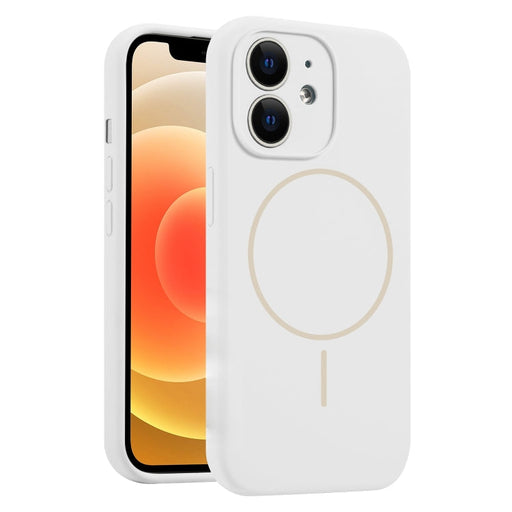 For iPhone 12 Fine Hole Liquid Silicone MagSafe Phone Case(White)