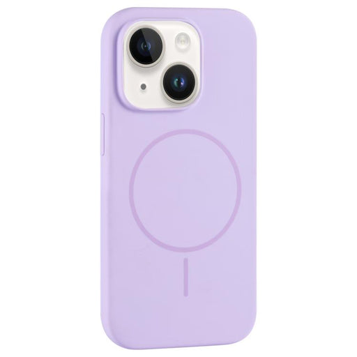 For iPhone 14 Large Hole Camera MagSafe Liquid Silicone Full Coverage Phone Case(Purple)