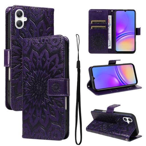 For Samsung Galaxy A06 5G / 4G Embossed Sunflower Pattern Flip Leather Phone Case(Purple)