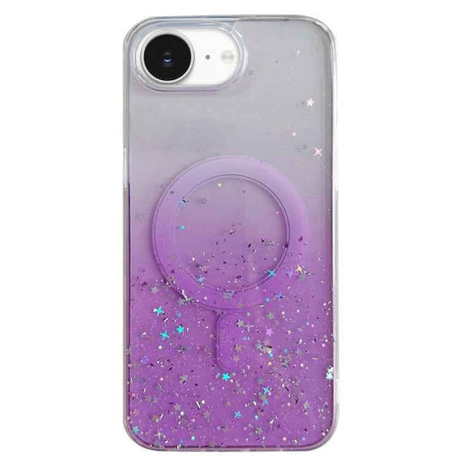 For iPhone 16e Glitter MagSafe Hybrid Clear TPU Phone Case(Purple)