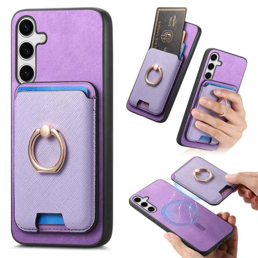 For Samsung Galaxy S24 5G Retro Cross Leather Ring Vertical Insert Card Bag MagSafe Phone Case(Purple)