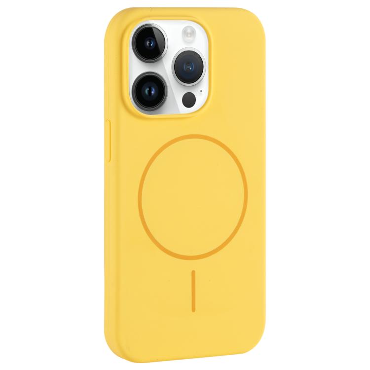 For iPhone 14 Pro Max Large Hole Camera MagSafe Liquid Silicone Full Coverage Phone Case(Creamy)