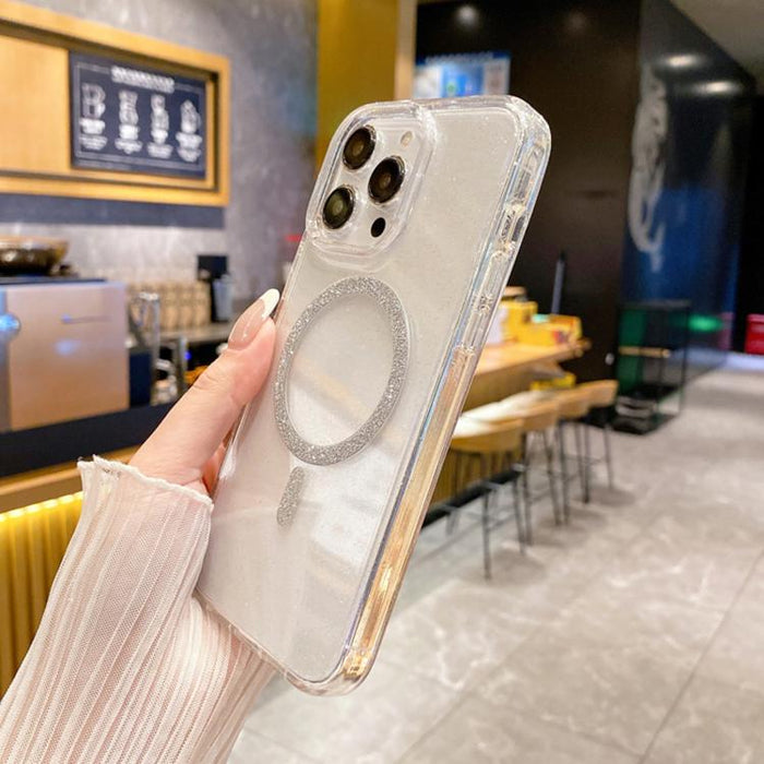 For iPhone 14 Pro Max Clear Glitter Powder MagSafe Phone Case(Transparent)