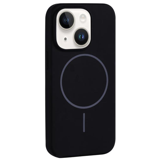 For iPhone 14 Plus Large Hole Camera MagSafe Liquid Silicone Full Coverage Phone Case(Black)